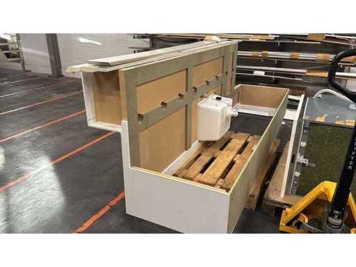 Afmetingen kastenwand circa 180x60x236 cm; met kookplaat, maar zonder de verdere apparatuur; reeds gedemonteerd en ingepakt op pallets. (afstapelen, omruilen of statiegeld per pallet); pallets zijn niet inbegrepen; statiegeld betalen bij afhalen, of pallets afstapelen; werkblad niet ingepakt op pallets (25-VER-00837)