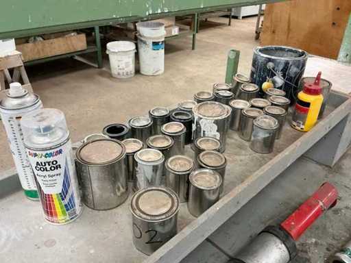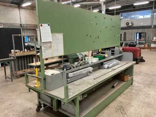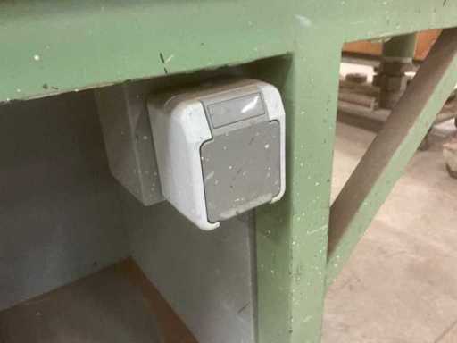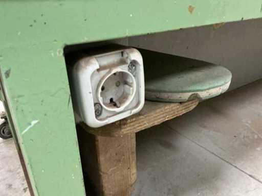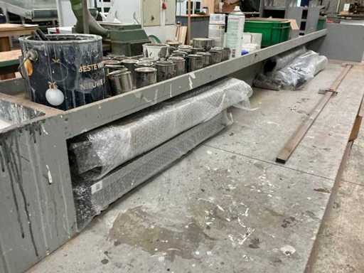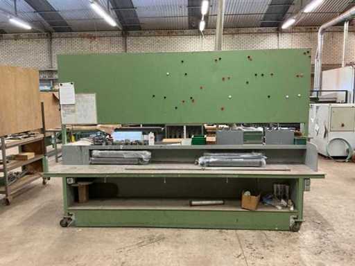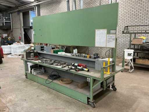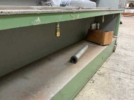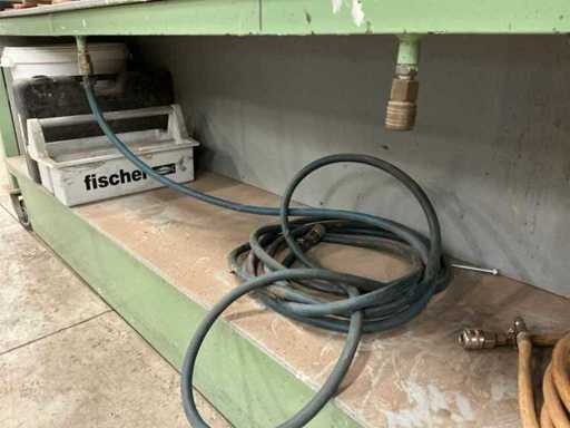Verrijdbaar, stalen frame met houten blad, Voorzien van luchtaansluitingen aan beide kanten, werkblad hoogte 74cm