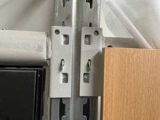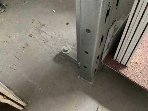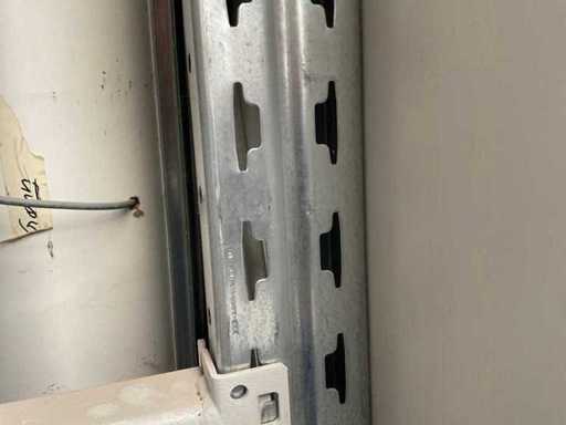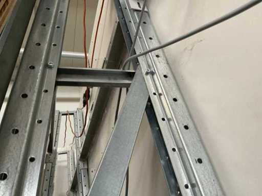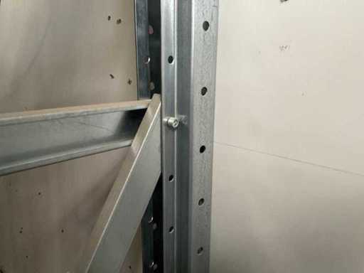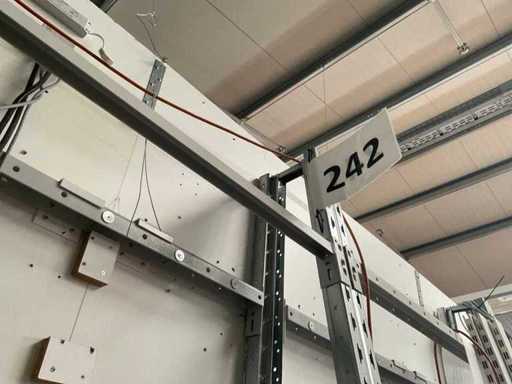 Verticale plank bestaande uit: 5 standaards ca. 630x3000mm, hoek circa 7 graden, 12 spanten ca. 1340mm, 3 spanten ca. 835mm, 4 steuncompartimenten ca. 285x1440mm, 1 steuncompartiment ca. 285x935mm, met inhoud