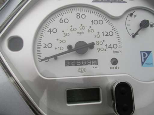 Motorscooter met 2 sleutels (1x master en 1x normaal) inclusief achter zijbeugelset en achterdrager. Piaggio dealer onderhouden, motor loopt.