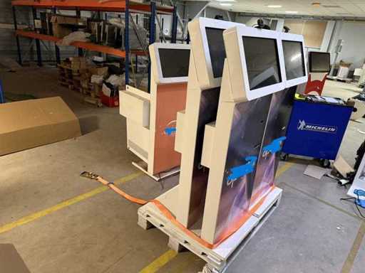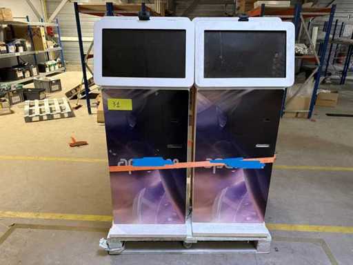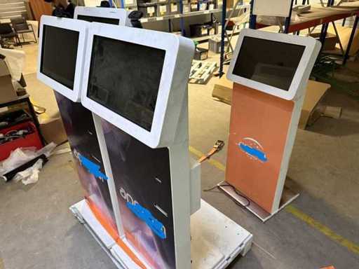 Set van 4 nieuwe ViewSonic VSD243-BKA-EV0 touchscreen-terminals. Ze zijn uitgerust met een ontvangstprinter, alle benodigde kabels (voeding, USB, stekkerdoos, enz.), USB-poort, interne pc's, barcodelezer en camera's. Paneel-/touchscreendetails: MerkweergaveSonic; Type: VSD243-BKA-EV0; Maat Lengte: 47 cm Breedte: 27 cm; Diagonaal: 60 cm; LED LCD-scherm; Formaat: 16:9; 8-bit TFTVA touchpanel; Uitgerust met USB + webcam + 5W audio; HDMI; Printerdetails: Nieuw; Totale afmetingen ongeveer Hoogte: 145 cm; Breedte: 55 cm; Diepte: 51 cm