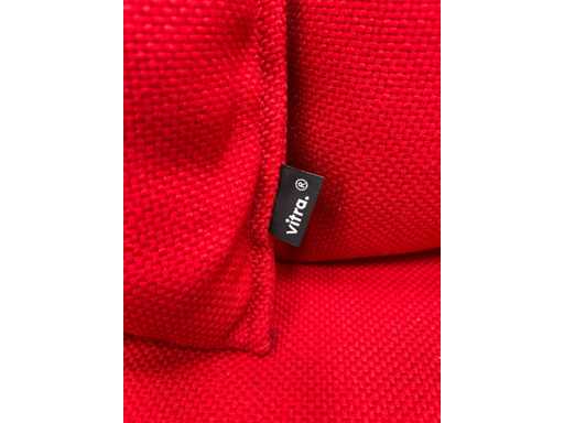 Vitra Alcove high back sofa in rode stof, met hoge rugleuning voor extra privacy en geluidsdemping. Ideaal voor lounges, wachtruimtes of informele vergaderplekken.