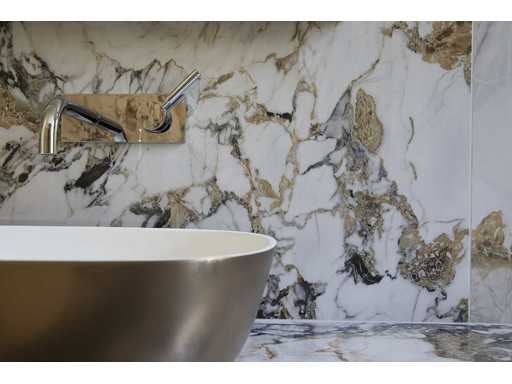 Tegel Excentriek Goud glanzend 60x120cm gerectificeerd, 69,12m2, 9mm dikte, made in Italy, keramische vloer- en wandtegel, vorst- en krasbestendig, 1 pallet 80x120cm, ca. gewicht 1190kg