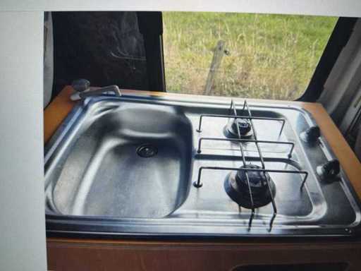 Er is een toilet, een gasfornuis, 1 bed 160/200 cm
