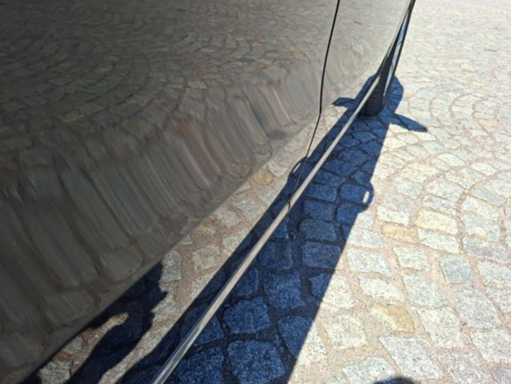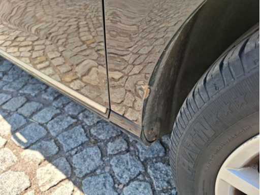 Tekenen van slijtage door leeftijd en duur; Steenbeschadigingen aan de voorkant, motorkap en boven de voorruit; krassen op het dak; Krassen en deuken op de zijwand en de linkerachterdeur; Lakschade aan de deur en spatborden rechts vooraan
