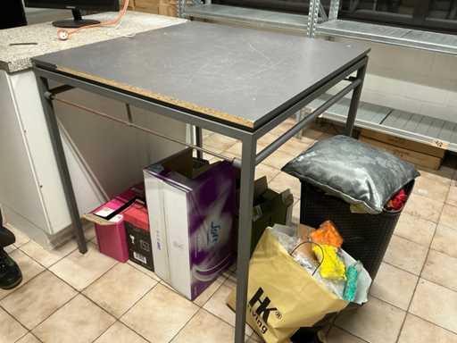 1 metalen bijzettafel voorzien van houten bovenblad afmeting circa 100 × 100 × 100 cm,