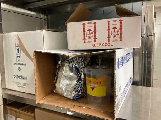 Bestaande uit: diverse smaken poeders, sauzen, hoorntjes, wafels, maatbekers met inhoud.