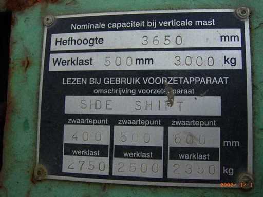 Na jaren van trouwe dienst dient deze heftruck opnieuw opgestart te worden. Beschikt over side shift! Accu leeg/defect. 1 lpg tank inclusief.