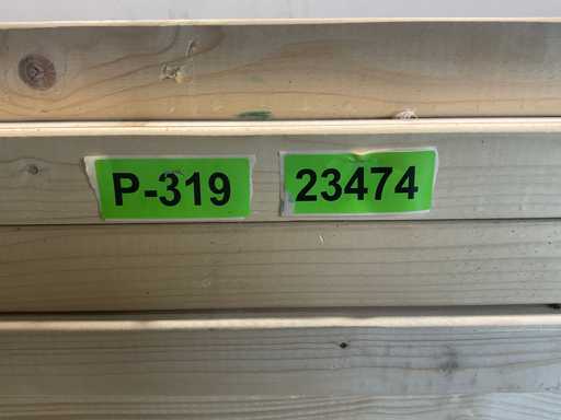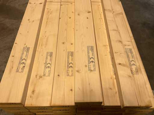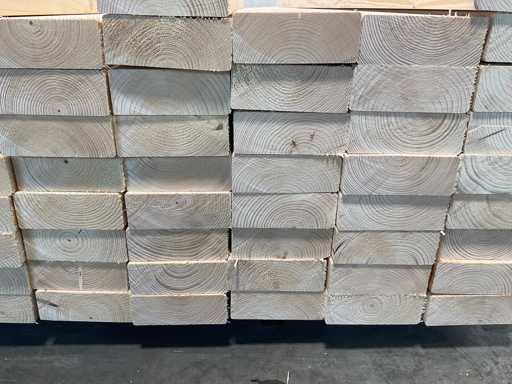 Vuren balken geschaafd, met een afmeting van 375 x 16 x 6,3 cm per stuk.