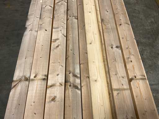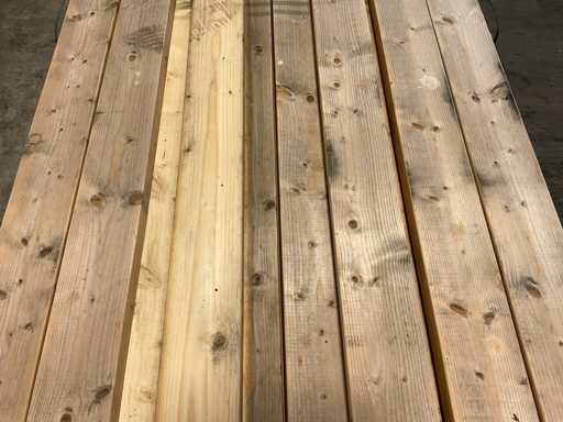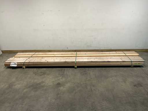 Vuren planken geschaafd, met een afmeting van 480 x 12 x 3,8 cm per stuk.