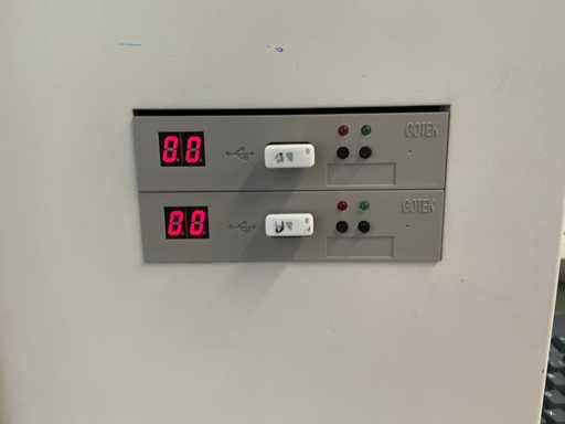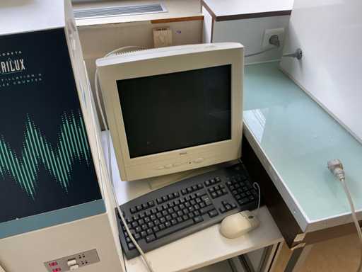 Ingesteld met een bedieningsmonitor en een standaardkast op wielen. Meubelformaat: 95x70x70