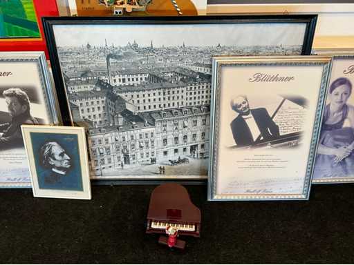 Diverse afmetingen en weergaven; inclusief decoratieve muis achter piano
