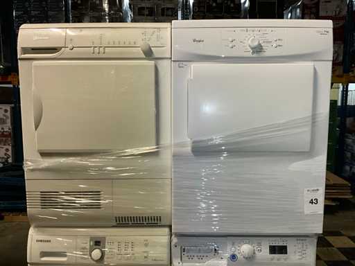 Bestaande uit 2x wasmachine, 2x droger op pallet, diverse merken en types.