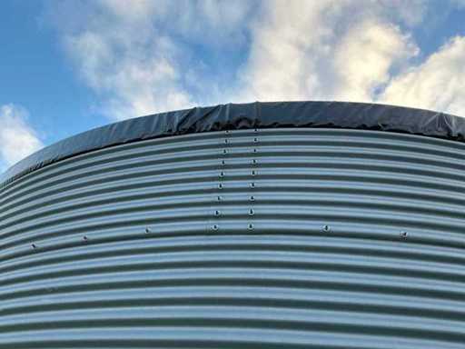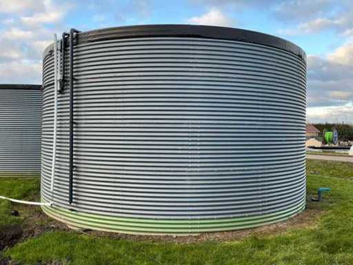 Diameter 7040 mm; hoogte 4220 mm; Watersilo bestaande uit stalen platen; vilten binnenzijde; rubberen binnen zak; RVS ratels en vrijkomende bouten en moeren; wordt gedemonteerd en transport klaar gemaakt door verkoper;