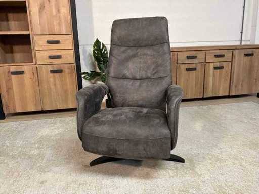 Fauteuil beschikt over verstelbare rugleuning en voetenbankje.