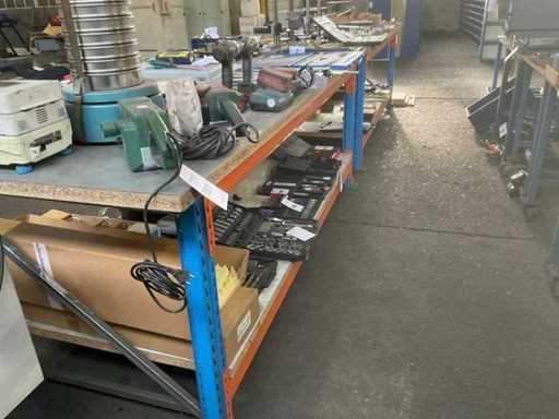 Voorzien van houten werkblad met metalen bovenkant, materialen op en onder werkbanken niet inbegrepen