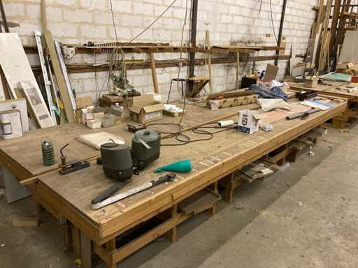 Grote werkbank van : 538x199x90cm (inhoud inbegrepen)