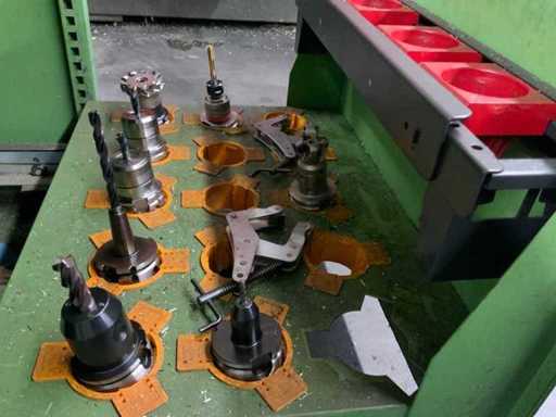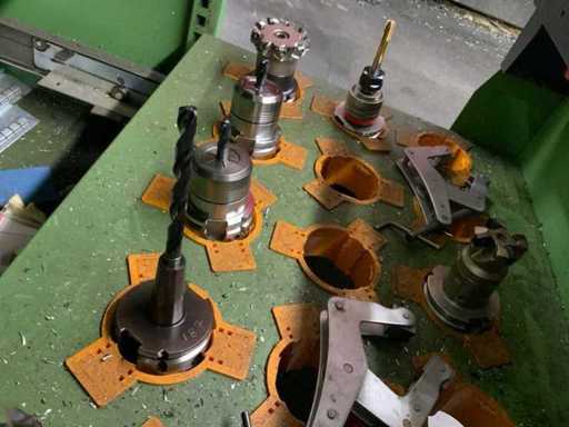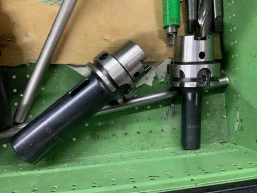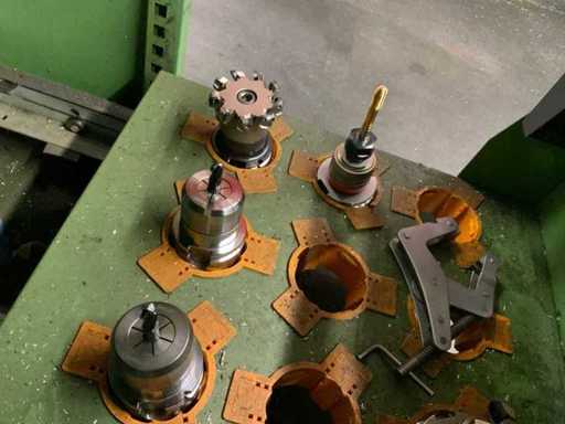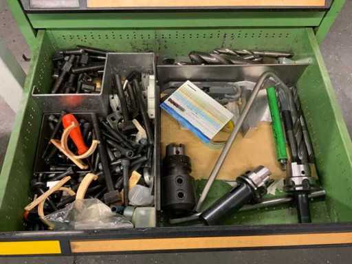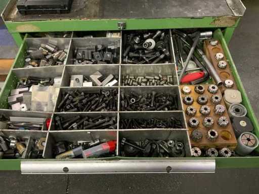 Gereedschapskast met diverse opspan gereedschappen voorzien van 5 laden met inhoud waaronder diverse spantangen, hsk houders en hulpgereedschappen