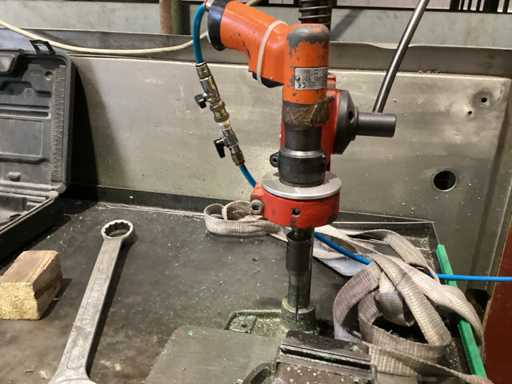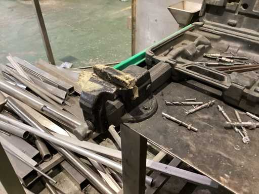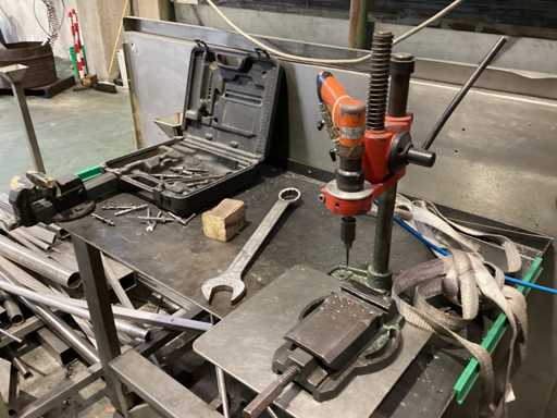 Werkbank met boor en bankschroef