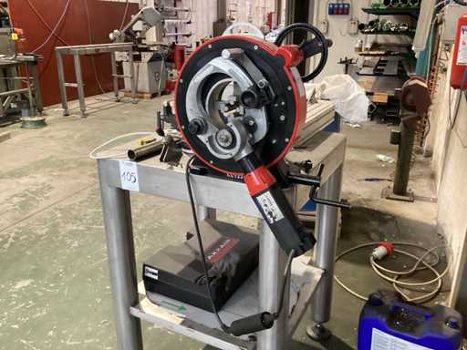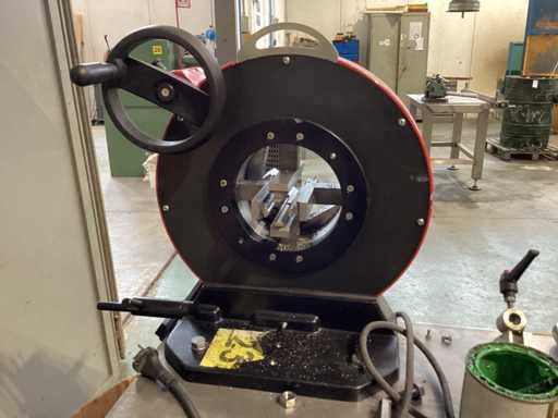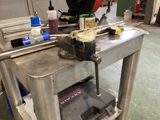 Werkbank met pijpsnijder en bankschroef