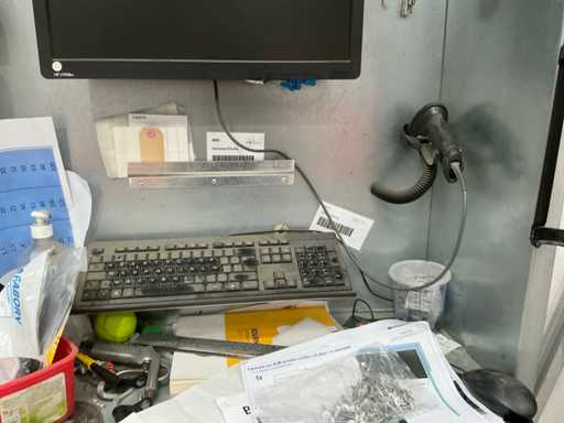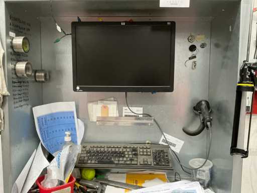 Voorzien van monitor HP, mini desktop HP, toetsenbord en muis, scanner SYMBOL compleet met wandkast