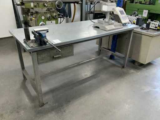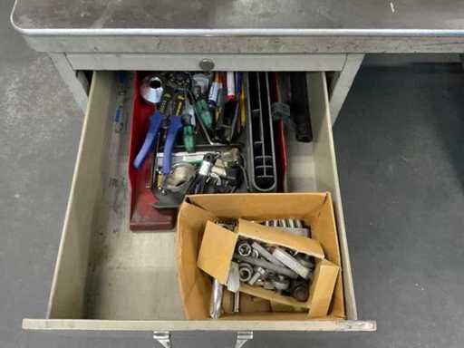 waaronder: 1 werkbank, blad afmeting: L 2000 x B 900mm, 1 Gispen bureau met inhoud