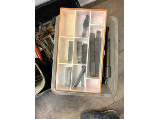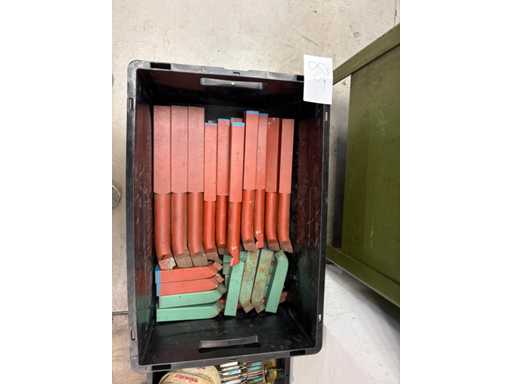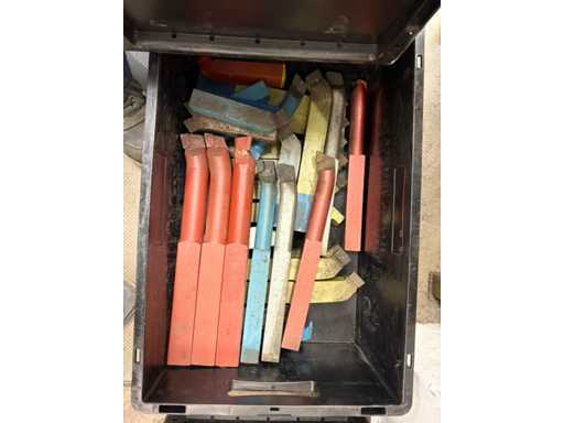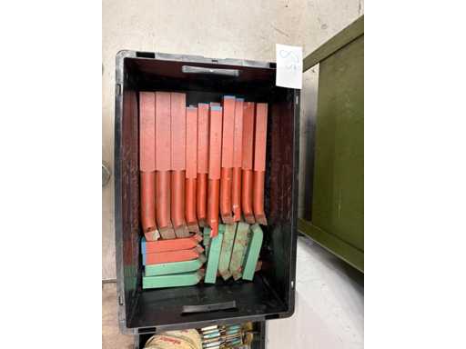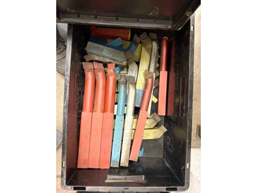 • HSS- en hardmetalen draaibankbeitels (verschillende maten, sommige ongebruikt, kleurgecodeerd)