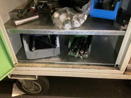 Werkplaatswagen met inhoud, bestaande uit: inclusief 3-bek-boorhaken, diameter ca. 200 mm, duikbekken, duikboon met taps toelopende schacht