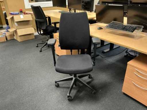 2x bureaustoel, 2x ladeblok, monitoren behoren niet tot het kavel.