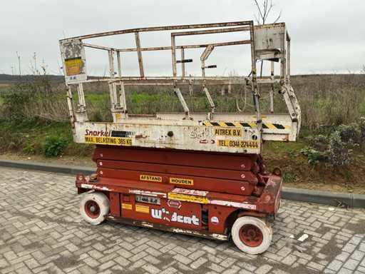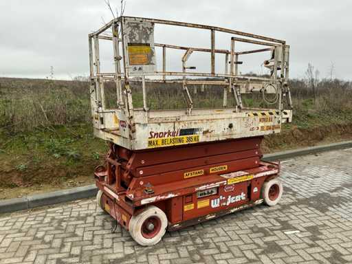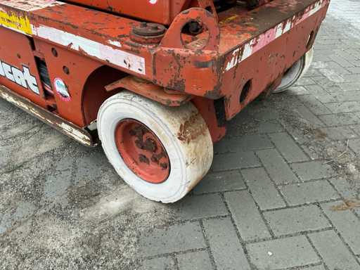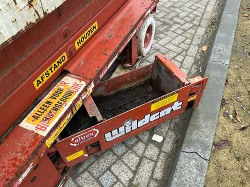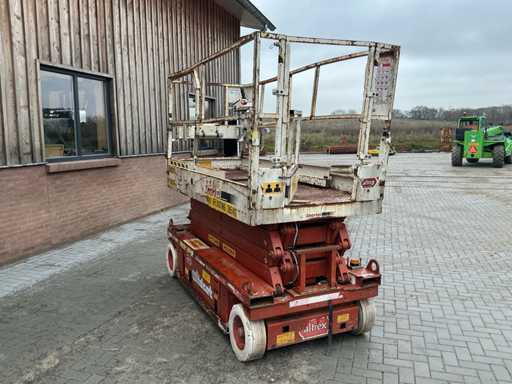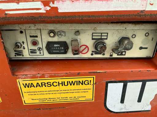 Voorzien van: non-marking banden, geïntegreerde lader, uitschuifbaar platform, maximale platformhoogte 6100mm, werkhoogte 7900mm, platformafmetingen 762mmx2286mm, verlengstuk 610mm x 914mm, nominale belasting platform (363 kg) gewicht 1.701 kg, lengte 231,1 cm, breedte 83,8 cm, totale hoogte ingeklapt 1994mm, geen accu's aanwezig, urenstand en werking onbekend.