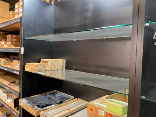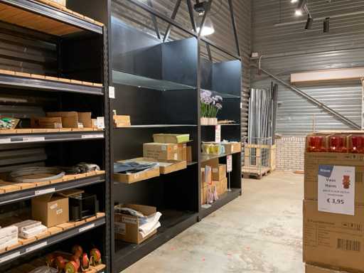 Kast hoogte ca. 280 cm, v.v. glazen legborden, inclusief verlichting, los te koppelen door koper van verlichtingsrail, exclusief inhoud, losse kavels.
