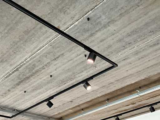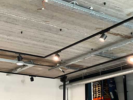 4x lengte van 8 meter en 4x lengte van 3 meter. Totaal 28 spots.