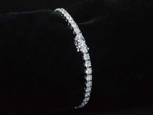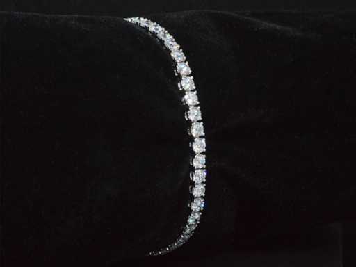 Diamant: Eco (Lab-grown); Slijpvorm: Briljant geslepen; Gewicht (carat): 6.56 carat; Kleur: E-F; Zuiverheid: VS; Slijpkwaliteit: Zeer mooi; Juweel: Armband; Gewicht: 12 gram; Afmetingen/lengte: 18 cm; Materiaal: 18K goud (750); Conditie: Nieuw; Verpakking: Luxe sieradendoos; Toelichting: De kwaliteit is overgenomen van het rapport behorend bij item. De waardebepaling is een beoordeling van een gecertificeerde diamantair, gebaseerd op consumentenprijzen.; Consumentenprijs: € 17.819,-