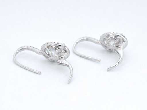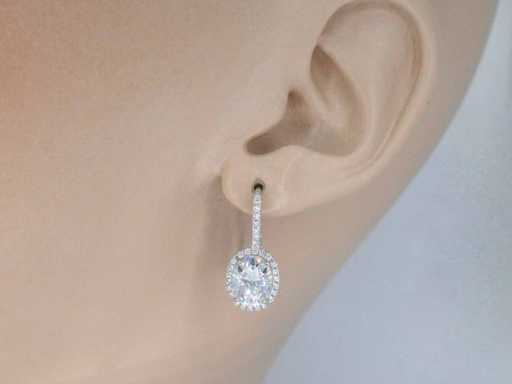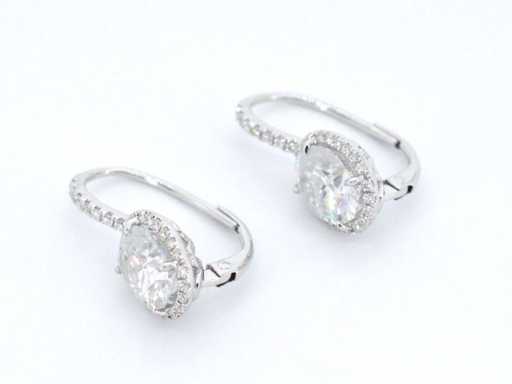 Witgouden entourage oorbellen met diamanten en een gemaakte ovale briljant