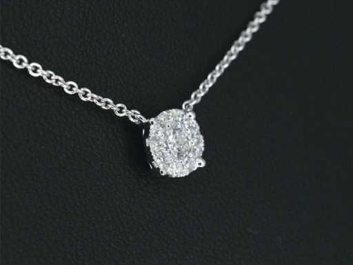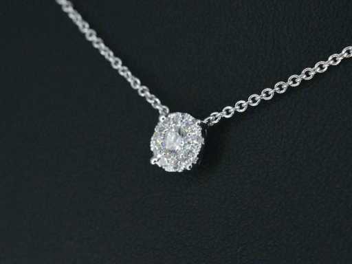 Witgouden ketting en hanger bezet met briljant geslepen diamant