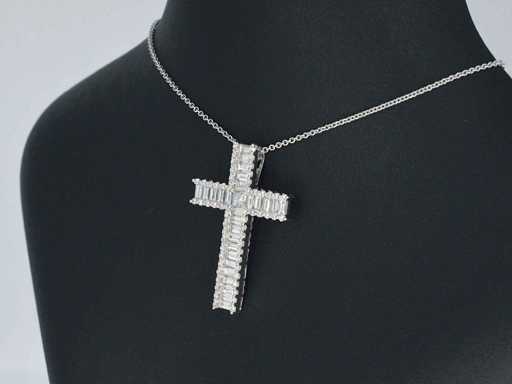 Witgouden kruis hanger met schitterende diamanten gezet