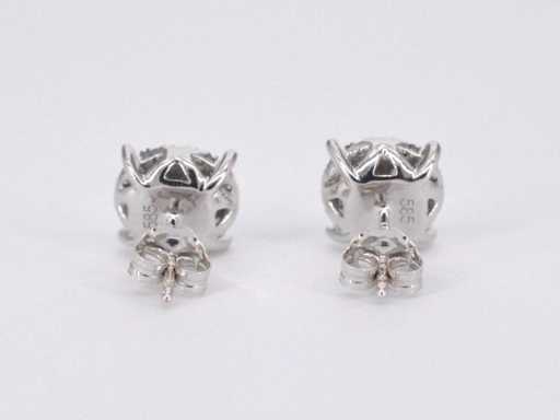 Diamant: Natuurlijk; Slijpvorm: Briljant geslepen; Gewicht (carat): 0.55 carat; Kleur: F-G; Zuiverheid: SI-P; Slijpkwaliteit: Zeer mooi; Juweel: Oorbellen; Gewicht: 2.1 gram; Afmetingen/lengte: 8 mm; Materiaal: 14 karaat (585); Conditie: Nieuw; Verpakking: Luxe sieradendoos; Toelichting: De kwaliteit is overgenomen van het rapport behorend bij item. De waardebepaling is een beoordeling van een gecertificeerde diamantair, gebaseerd op consumentenprijzen.; Consumentenprijs: € 2.468,-