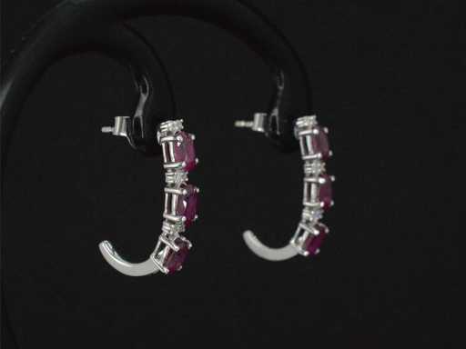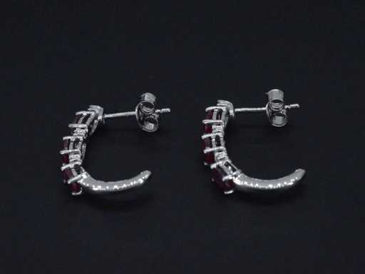 Witgouden oorbellen met diamanten en robijn