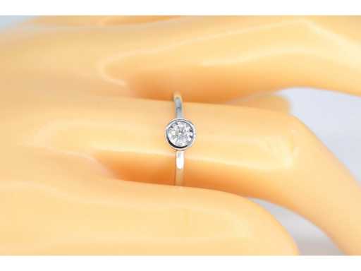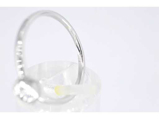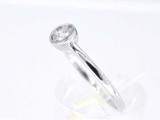 Diamant: Natuurlijk; Slijpvorm: Briljant geslepen; Gewicht (carat): 0.10 carat; Kleur: F-G; Zuiverheid: SI-P; Slijpkwaliteit: Zeer mooi; Juweel: Ring; Gewicht: 1.6 gram; Ringmaat (op maat gemaakt*): 54 (17.25 mm); Materiaal: 14 karaat (585); Conditie: Nieuw; Verpakking: Luxe sieradendoos; Toelichting: De kwaliteit is overgenomen van het rapport behorend bij item.