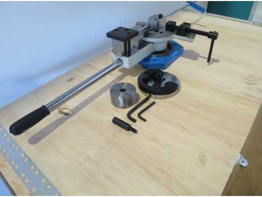 Handbuigmachine Vlakke stang 30 x 8 mm Vierkant staal 12 mm Ronde staal 15 mm Gewicht 0,025 t Verpakkingsgrootte max. 51 x 31 x 22 cm Conditie: nooit gebruikt / nieuw (5)