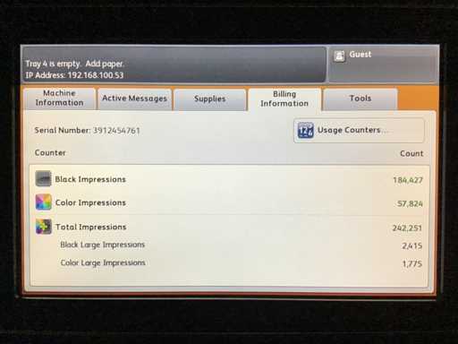 A3/SRA3 multifunctionele kopieermachine in kleur, teller geeft 242.251 afdrukken aan, kopieerstatus OK, gecontroleerd door een legitieme technicus! PostScript 3 is geactiveerd! Raadpleeg de bijgevoegde foto's voor de resterende toner- en trommelniveaus in percentage!