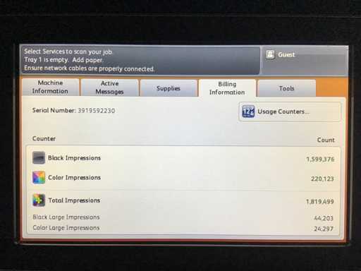 A3/SRA3 multifunctionele kopieermachine kleur, teller geeft 1.819.499 afdrukken aan, kopieerstatus OK, gecontroleerd door een legitieme technicus! PostScript 3 is geactiveerd! Raadpleeg de bijgevoegde foto's voor de resterende toner- en trommelniveaus in percentage! Het apparaat heeft Office Finisher inbegrepen!