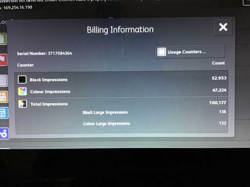 A3/SRA3 multifunctionele kopieermachine kleur, teller geeft in totaal 100.177 afdrukken aan, kopieerstatus OK, gecontroleerd door een legitieme technicus! PostScript 3 is geactiveerd! Raadpleeg de bijgevoegde foto's voor de resterende toner- en trommelniveaus in percentage! Het apparaat heeft fax met 1 lijn inbegrepen!