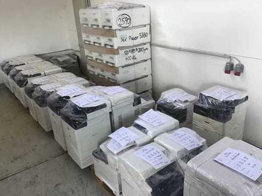 A4 multifunctionele kopieermachine in kleur, teller geeft in totaal 18.751 afdrukken aan, kopieerstatus OK, gecontroleerd door een legitieme technicus! PostScript 3 is geactiveerd! Raadpleeg de bijgevoegde foto's voor de resterende toner- en trommelniveaus in percentage! Het apparaat heeft fax met 1 lijn inbegrepen!