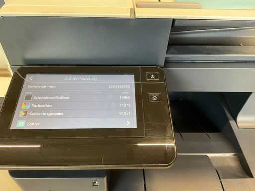 Counter reading: 91061 pagina's. Kleur alles-in-één printer met maximaal 43 ppm in kleur/zwart-wit en tot 1200 × 2400 dpi printresolutie.