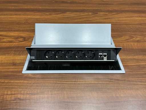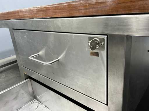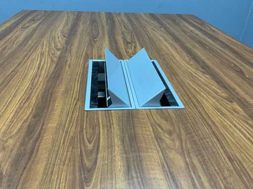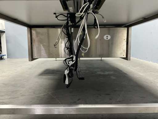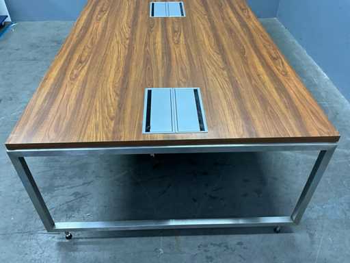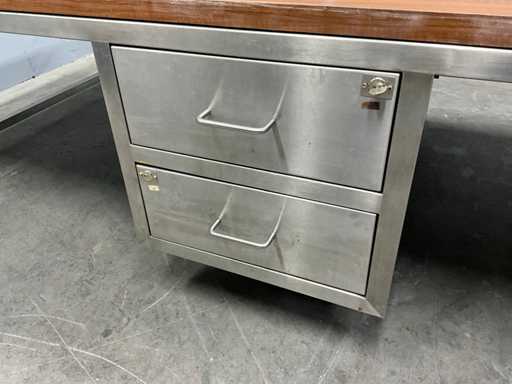 Bureau voor 4 werkplekken. Voorzien van 4 lades en kabeldoorvoer