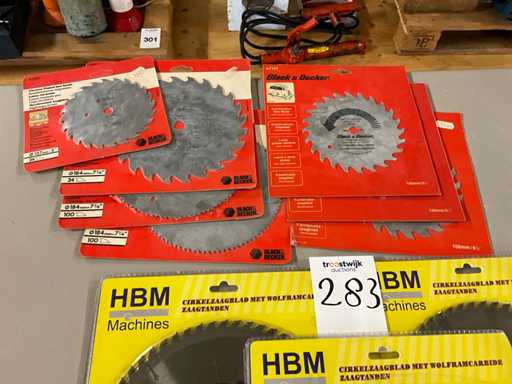 3x HBM ø 255 MM, 7x black & decker, 1x ø 127 mm, 2x ø 140 mm, 1x ø 156 mm, 3x 184 mm