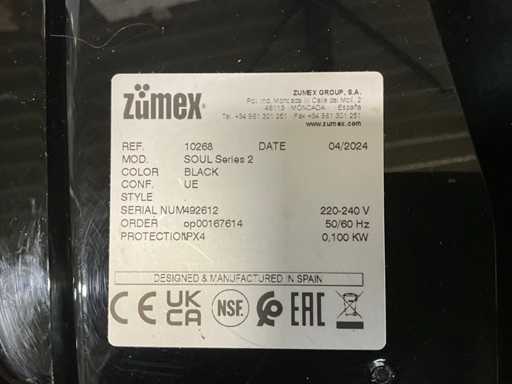 2024 Zumex soul 230 Volt; sinaasappel pers, Panasonic NE-1643 magnetron 230 Volt; Bamix staafmixer, Rpm waterpomp 300,Watt; lege gastank koolstofdioxide