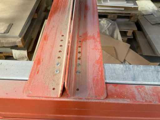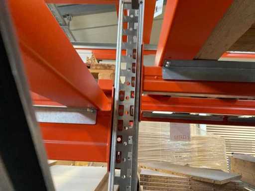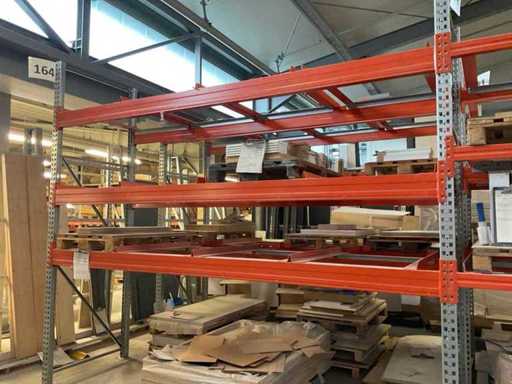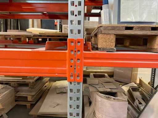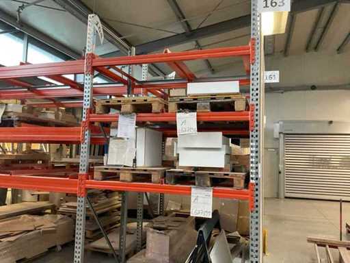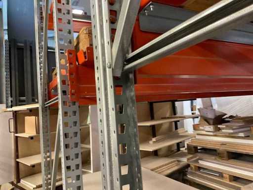 Zware plank bestaande uit: 3 standaards ca. 1100x3300mm, 6 spanten circa 1790mm, 6 spanten ca. 3600mm, inclusief pallethouders, met inhoud