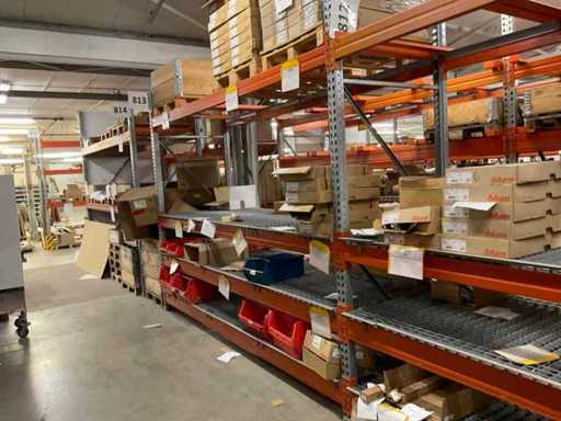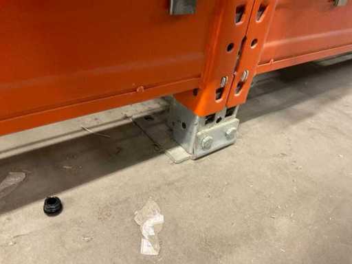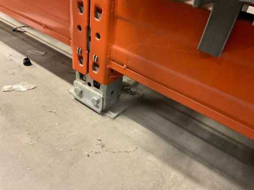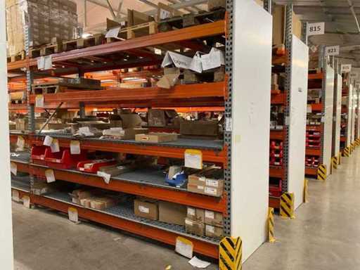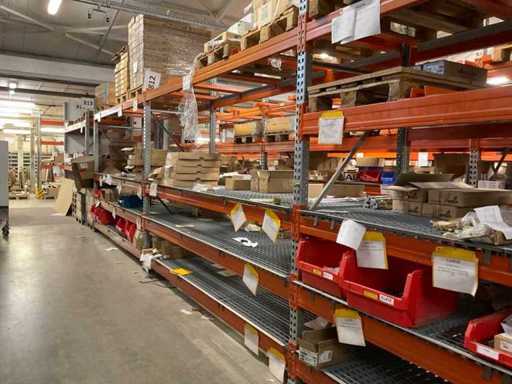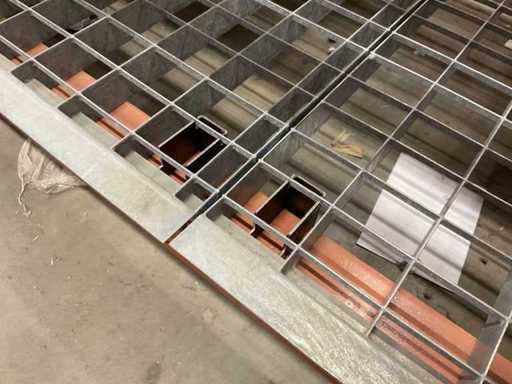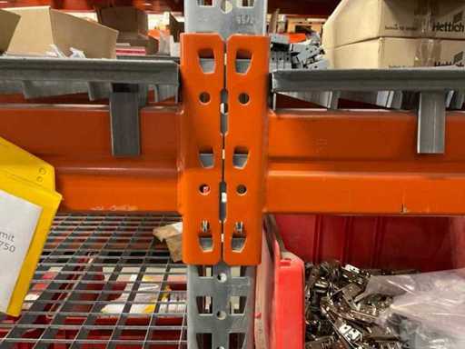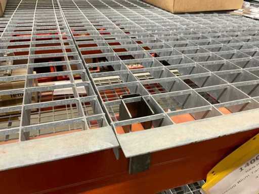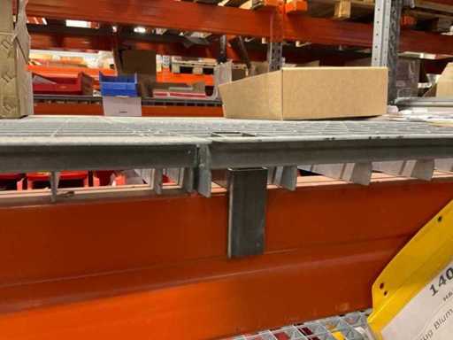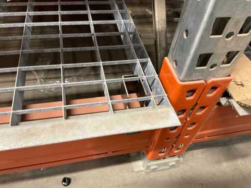 Zware plank bestaande uit: 2 staanders ca. 1100x3300mm, 2 staanders ca. 1100x3000mm, 26 spanten ca. 3600mm, inclusief pallethouders, inclusief gaasplank, met inhoud